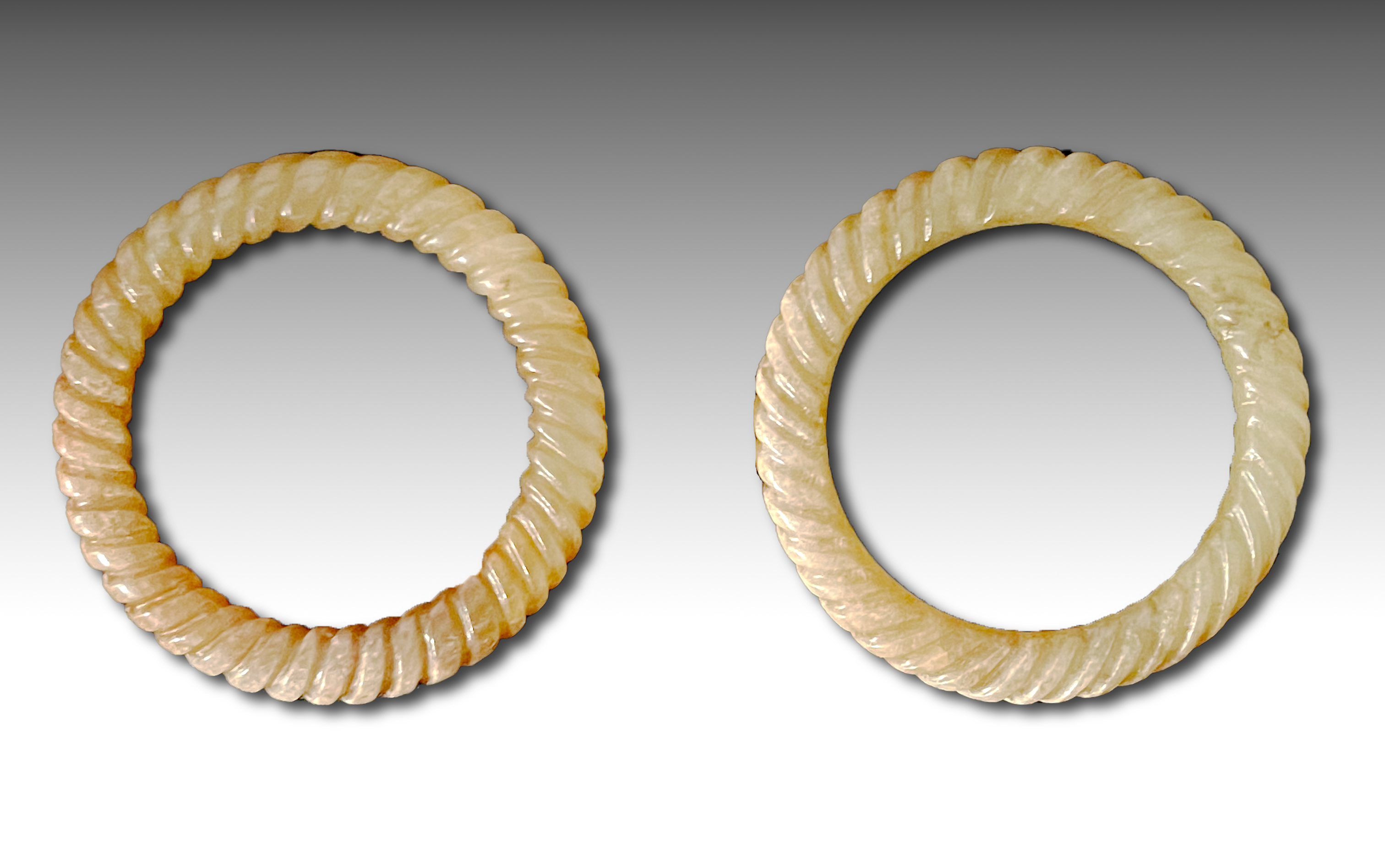 御铭堂精品藏品展示【汉 白玉绞丝环一对 】