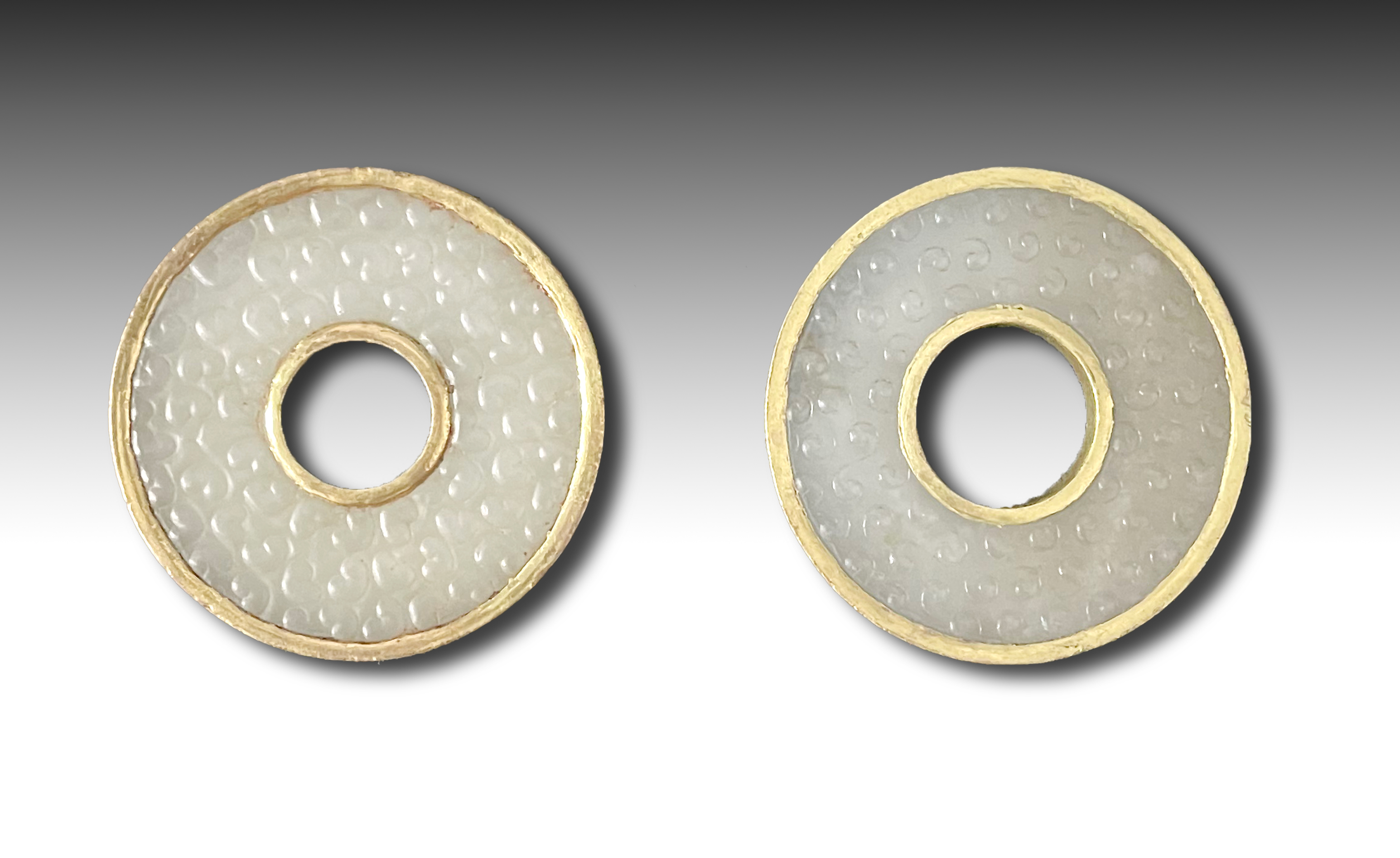 御铭堂精品藏品展示【汉 白玉包金蚕纹玉璧一对】